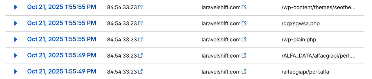 Я активував таке правило безпеки в Cloudflare для laravelshift.com. Тепер мій додаток дозволяє трафік лише до існуючих ендпоінтів. Усе інше блокується Cloudflare. За перший тиждень було заблоковано понад 5000 некоректних запитів, що звільнило ресурси мого сервера для обробки коректних запитів