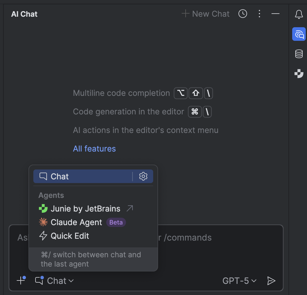 Junie, AI-агент з кодування від JetBrains, також приєднується до списку доступних агентів поряд з Claude. Скоро з'явиться функція одноразового чату.